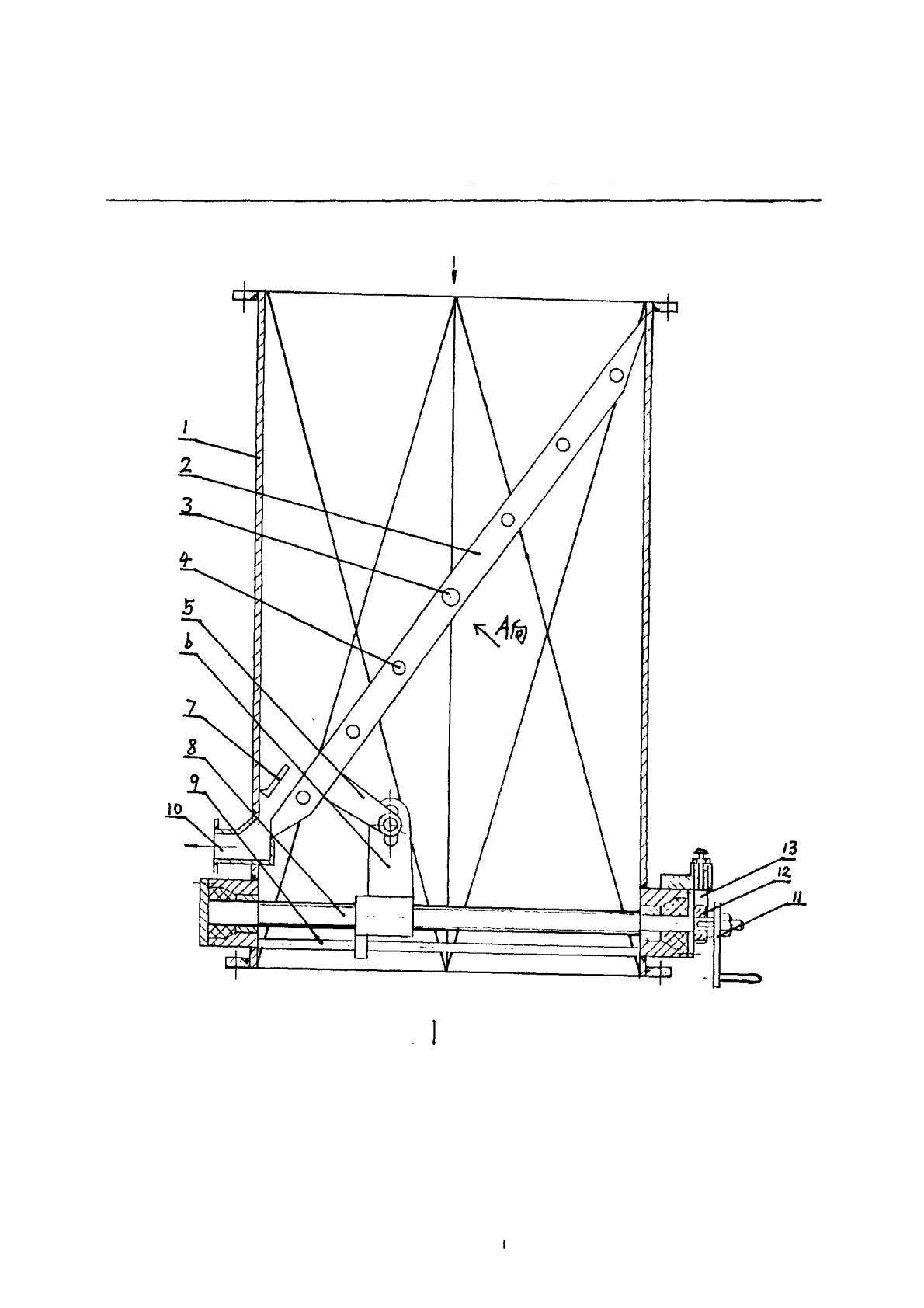 (2)由于一片柵格網(wǎng)板固定在一個(gè)轉(zhuǎn)軸上,轉(zhuǎn)軸既起固定作用,又起動(dòng)力傳動(dòng)作用,因此,在任意位置時(shí)轉(zhuǎn)軸本身不能自鎖,難于保證柵格網(wǎng)板準(zhǔn)確旋轉(zhuǎn)到位而導(dǎo)致間隙漏球的目的在于克服上述不足而提供一種結(jié)構(gòu)簡單,科學(xué)合理的柵格網(wǎng)板旋轉(zhuǎn)裝置,使用該裝置可提高收球率,使電站凝汽器冷卻管的連續(xù)清洗獲得較好的清洗效果。