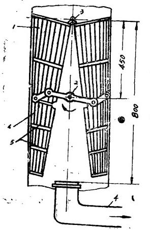 關(guān)于開關(guān)膠球清洗裝置也有二種方案,一種是現(xiàn)采用的,優(yōu)點(diǎn)是開關(guān)方便一些;缺點(diǎn)是杠桿系統(tǒng)和旋轉(zhuǎn)軸都“貫穿”循環(huán)水管,增大了水阻,即使處于“短路”狀態(tài)此水阻仍去不掉。另一種利用類似于潤(rùn)門開關(guān),在收球網(wǎng)之外開和關(guān),(圖3乙)它在“短路”狀態(tài)時(shí),開啟機(jī)構(gòu)已旋出循環(huán)水管外,可減少短路時(shí)的水阻,當(dāng)然機(jī)構(gòu)稍復(fù)雜一點(diǎn),開關(guān)稍費(fèi)事。我們擬在”3機(jī)采用這種機(jī)構(gòu),以和“4機(jī)對(duì)比。