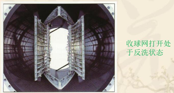 收球網安裝在冷卻水出口管段上,從凝汽器流