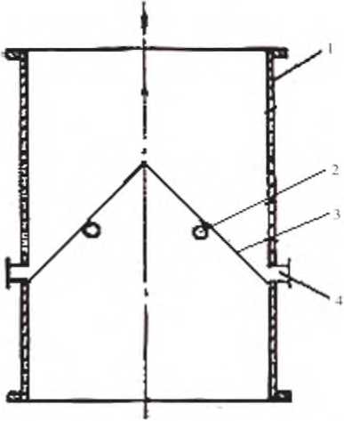 筒壁吻合處間隙大于5mm,這種設(shè)計在運(yùn)行過程中不僅形成比較大的水阻.而且極易產(chǎn)生渦流,使膠球不能順利進(jìn)入收球口,當(dāng)數(shù)量增多時,容易造成膠球堵塞或漏入循環(huán)水系統(tǒng)中(熱電中心的各循環(huán)冷卻水塔出水口常發(fā)現(xiàn)大量膠球)熱電生產(chǎn)中心曾將2機(jī)收球網(wǎng)進(jìn)行過試改造,將收球網(wǎng)改成“V”型,如圖3所示,但改造完成后,膠球清洗裝置投入運(yùn)行.發(fā)現(xiàn)有大址膠球卡在兩個收球網(wǎng)底部接觸的地方,無法回到收球室,其收球率依然偏低,只有30%左右,改造未達(dá)到預(yù)期目的