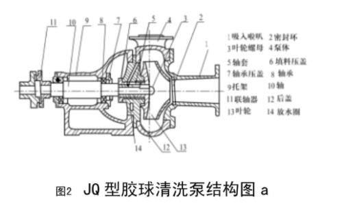 JQ125-15型膠球輸送泵為單級懸臂式離心水泵,用來輸送膠球進入凝汽器清洗冷卻水管。